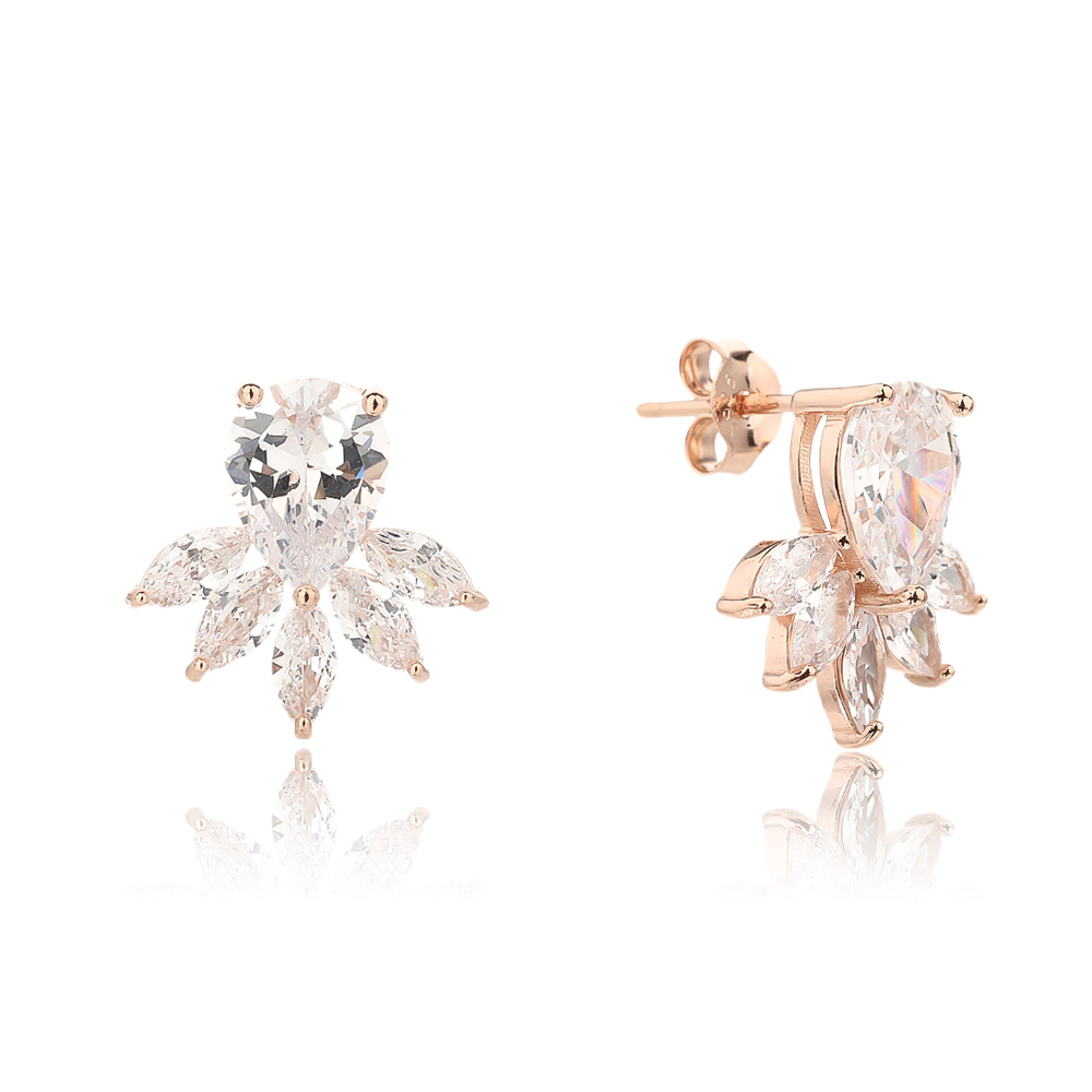 ומצופים זהב אדום (רוז גולד) משובצים באבני זרקון העגילים מגיעים כזוג